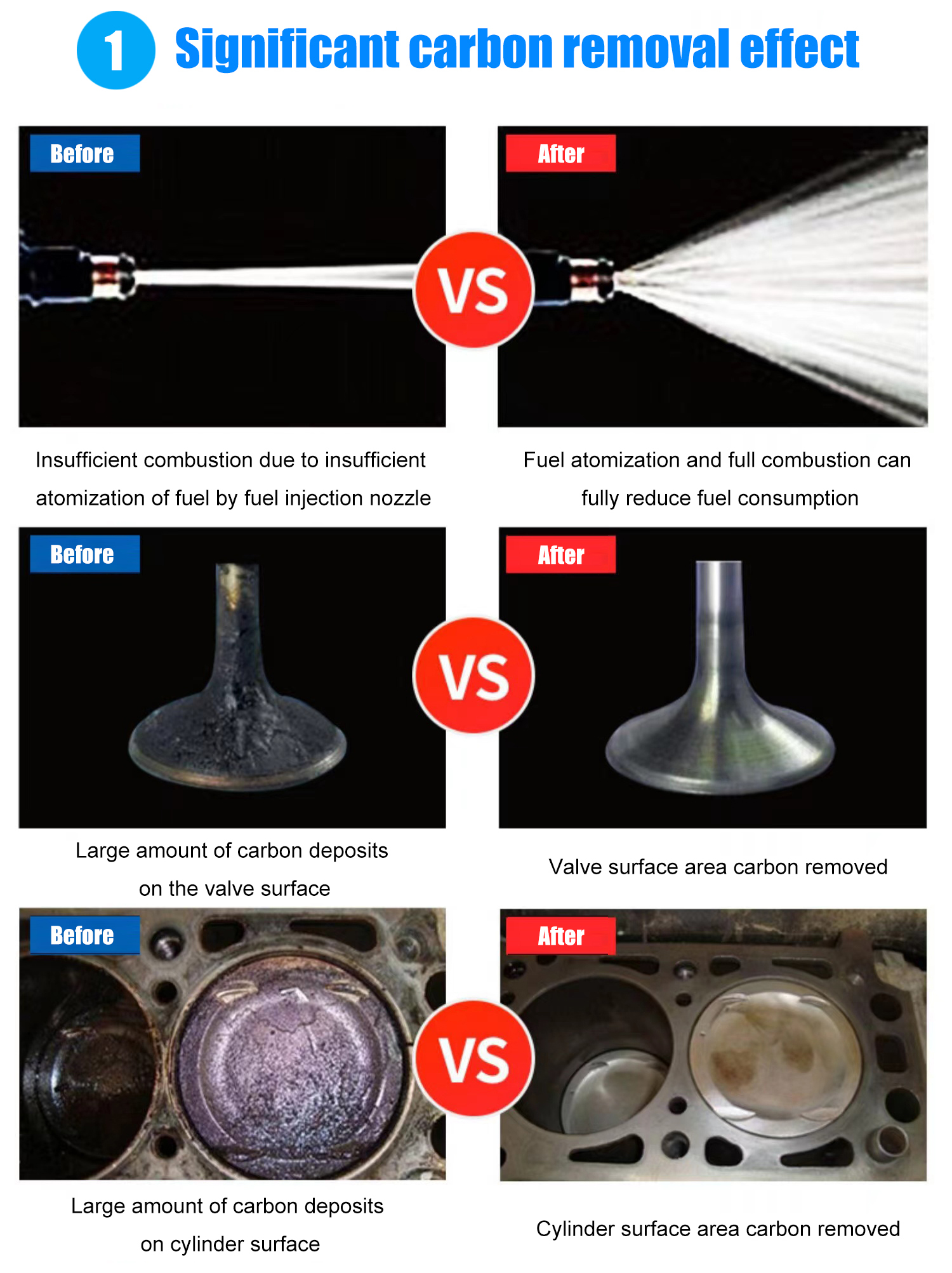It’s suitable for gasoline vehicles and diesel vehicles. Clean up the gum and carbon of the fuel injection system.
